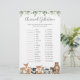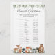 Die Waldtiere themed Baby Dusche Tiergestationskarte bietet eine Aquarellwoodland Tiere Illustration und Aquarell Grüne eucalyptus Garland und eleganten handgeschriebenen Stil Schriftart.