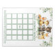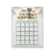 Watercolor Woodland Animals Baby Shower Bingo Sheets Notepad. Baby Animals include Bear, Deer, Moose, Raccoon, Bunny Rabbit, Fox and Owl on eucalyptus leaves und forest greenery.