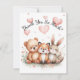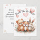 Complete your woodland-themed celebration with this adorable thank you card featuring a sweet bear, fox, and bunny surrounded by soft pastel watercolor florals and floating hearts.