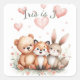 Woodland Animals Bear Fox Bunny Pink Hearts Girl Quadratischer Aufkleber