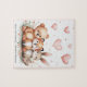 Woodland Animals Cute Bear Fox Bunny Pink Hearts Puzzle