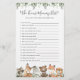 Woodland Tiere Themed Baby Dusche, die die beste Spielkarte kennt, bietet eine Aquarellwoodland Tiere Illustration und Aquarell Grüne eucalyptus Garland und elegante handgeschriebene Stil Schriftart.