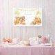 Celebrate your little one with this adorable woodland animals birthday banner featuring a sweet bear, bunny, and fox surrounded by floating confetti, colorful flag streamer, yellow and green balloons. Perfect for forest-themed gender neutral birthday parties, this banner adds a whimsy touch to your celebration.