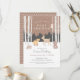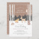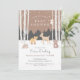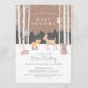 Feiern Sie den Kleinen unterwegs mit diesen bezaubernden Winter-Babydusche-Einladungen! Ein süßes Hirsch, ein schüchterner Fuchs, ein brauner Bär, Marmelade, porcupine und weise alte Eule verbinden sich im Winterwald mit einem weichen braunen Hintergrund. Die Apfelbäume sind vorn und Mitte, während der Schnee sanft um sich fällt. Zurück hat ein braunes und weißes Polka-Punktmuster. Ideal für geschlechtsneutrale Babyduschen.