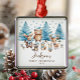 Einfach perfekt Baby's First Christmas Ornament mit einer süßen Aquarellwaldszene mit niedlichen kleinen Waldtieren in blauen Hüten und Schals. Schönes Sake-Ornament für einen kleinen Jungen.