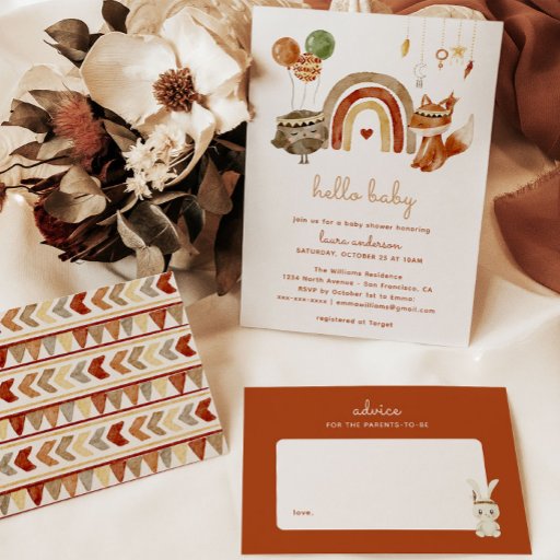 Dieses Design ist Teil der Babyduschkollektion "Boho". Es verfügt über niedliche Schreibwaren mit Aquarellmuster, Regenbögen, Träumereiern, Pflanze und Waldtieren in Grün-, Braun- und Rottönen. Perfekt für Herbst / Herbst Baby Dusche Feiern. Bereit, es mit Ihren Event-Details, einfach auf den Personalisier-Button oben und fügen Sie Ihre Mutter + Party-Informationen!