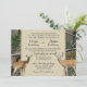 Rustikale und spaßige Waldhirsche nicht traditionelle Hochzeitseinladung. Buck and dock mit einem eigenen Baum und Blätter Tarnung und dem Charme des Landes Burlap.