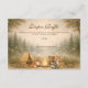 A heart-melting woodland design featuring a sweet gathering of forest friends beneath a soft storybook canopy. Fox, fawn, bear, raccoon, and bunny sit together in a warm autumn meadow framed by gentle trees and vintage parchment tones. The earthy palette and delicate botanical details create a cozy, nostalgic feel—perfect for a nature-inspired celebration. Fully customizable to make it uniquely yours.