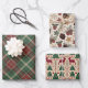 A Rustic Woodland Christmas Holiday Wrapping Paper Sheet Set With Deer, Acorns, Trees And A Red Green Plaid