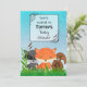 Waldtiere, Fuchs, Raccoon, Igel und Eichhörnchen. Personalisieren Sie diese Einladung, indem Sie Ihre Informationen zu dieser niedlichen, aquamarinen, blauen Aqua und schwarz gefärbten Baby Boy Dusche in der personalisierten Zone hinzufügen.