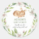 Woodland Deer Floral Greenery Kinderdusche Vielen Dank für den klassischen Rundaufkleber - Adorable und niedliche Aufkleber mit einem schlafenden Waldhirsch umgeben von Blumengrün und Blattwerk. Alle Texte sind so vorbereitet, dass Sie Ihre Daten schnell und einfach personalisieren können.