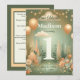 Diese elegante Einladung besticht durch eine magische Szene in einem bezaubernden Wald mit Blume, Wolken, Lichtern und Ballons. Dieses raffinierte Design zeichnet sich durch eine grüne und goldene Farbpalette mit aprikotfarbenen Akzenten aus. Typografie ist dunkelgrün und creme. Die Rückseite der Karte weist das gleiche Farbschema auf und enthält Platz für Ihre Nachricht und Details. Diese stilvolle Karte wird ein schöner Sake für den ersten Geburtstag deines Kleinen sein. Ein echter Schatz. Dieses Design zeichnet sich durch generativen Inhalt aus.