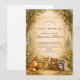 A heart-melting woodland design featuring a sweet gathering of forest friends beneath a soft storybook canopy. Fox, fawn, bear, raccoon, and bunny sit together in a warm autumn meadow framed by gentle trees and vintage parchment tones. The earthy palette and delicate botanical details create a cozy, nostalgic feel—perfect for a nature-inspired celebration. Fully customizable to make it uniquely yours.
