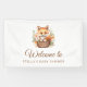 Welcome guests with this charming woodland fox baby shower banner featuring an adorable fox surrounded by soft florals. The gentle watercolor style makes it perfect for a warm and inviting celebration. All text is fully editable so you can personalize the name and event details. A beautiful addition to any woodland or forest-themed baby shower.