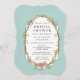 Ein zarter Kranz aus Waldzweigen und süßen Blumen umkreist diese hübsche Bridal-Duscheinladung in sanfter natürlicher Schönheit. In sanften Pastelltönen aquamarin, rosa, Elfenbein und Frühlinggrün ist diese originelle Illustration von Kat Parrella perfekt für ein Party-, Tee-, Frühlings-, Freibad- oder Hinterhofduschthema. Jede Linie ist für Sie individuell anpassbar.