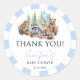Wasserfarbenblau niedliche elegante Waldtiere wie Fuchs, Bär, Racon, Eule Baby Dusche rund um danke Ihnen Aufkleber.