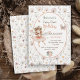 Feiern Sie den magischen Meilenstein Ihres kleinen Märchens mit dieser whimsical Fee zum ersten Geburtstag. Das Design ist mit weichen, wasserfarbenen Leuchtern, einem Schmetterling und zarten Wildblumen geschmückt und zeichnet sich durch ein traumhaftes, bezauberndes Ambiente aus. Eine süße, märchenhafte Ballerina in Rosa-Rosa-Tönen schwebt inmitten subtiler Vegetation und prächtigen Gartendetails und lädt zu einem gemütlichen Ambiente im Wald, im Cottage oder in der Sommermärche ein. Mit eleganten Schriftart, einer sanften Rosa- und Pfirsichpalette und einem hellen, luftigen Stil Set es den Ton für eine wirklich charmante und magische Feier.