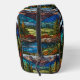 A radiant stained glass scene of a majestic forest sanctuary, where towering trees frame a stunning mountain range in the distance. Light and color intertwine to create a serene yet powerful tribute to the wild.