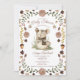 This sweet watercolor mouse stands quietly among woodland ferns and mushrooms, wrapped in a cozy scarf and surrounded by soft florals and earthy greenery. With its gentle expression and storybook charm, this design captures the heart of a woodland baby shower. Perfect for a gender-neutral celebration filled with rustic warmth, forestcore softness, and a little woodland magic.