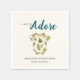 Welcome your little "Adore" with these beautifully designed paper napkins, perfect for a baby shower celebrating a baby boy. The charming watercolor graphics showcase a baby bodysuit patterned with an array of green and brown oak leaves, evoking a sense of natural beauty and gentle beginnings. The phrase "A Boy to Adore" is elegantly written in a teal script, adding a sophisticated touch to the woodland theme. These napkins are a lovely addition to your baby shower tableware, creating a cohesive and enchanting atmosphere for guests.