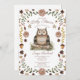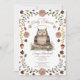 Invite loved ones to a woodland baby shower with this wide eyed watercolor owl, nestled on a rustic log and framed by soft florals, acorns, and greenery. With its whimsical expression and earthy watercolor details, this forest themed design brings a lighthearted charm to your celebration. Perfect for a gender-neutral gathering inspired by nature, forestcore style, and a touch of storybook magic.