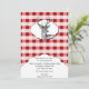 Diese moderne Party Einladung ist perfekt für Ihr Party zu Weihnachten. Der Hintergrund ist ein leuchtend rot-weiß kariertes Gingham-Muster. Hinter dem Gipfel befindet sich eine weiße, geschossene Medaille mit einer Skizze eines Hirschkopfes in der Mitte. Unten ist eine größere Medaille, um den Text zu Set.
