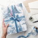 Wrap your gifts in timeless elegance with this blue and white woodland toile Christmas pattern. Featuring delicate illustrations of snowy forests, rustic cabin houses, elk deer, pine trees, and winter foliage, this classic design brings a serene, storybook charm to your holiday season. The crisp blue and white palette adds a refined touch to traditional Christmas gifting, perfect for those who love nature-inspired holiday style.