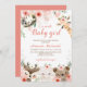Personalisieren Sie diese phantastische Woodland Wald Baby-Dusche Einladung mit Ihren Details einfach und schnell. Dies ist eine schöne Anordnung der Grünen-Blätter und Holzfreunde mit Rose rosa Blumen.