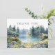 An elegant funeral memorial thank you card featuring a watercolor woodland forest wildflowers floral lake scene. You can personalize with your own thank you message and photo of your loved one. Designed by Thisisnotme©