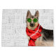 Ein lustiges Wortkunsthintergrund mit einer deutschen Schäfer-Illustration, die für die Saison auf dieser Geschenktüte für den Hirten- und Haustierliebhaber gekleidet ist.