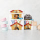 Ein niedlicher Hund mit einer Kugel und einem Gericht aus Futter, ein Hundehaus und farbenfroher Text, der T - Shirt, Hunde, Tasse, Taschen, Karten, Aufkleber, Schlüsselketten, Schaltknöpfe, Magnete, Trockenleerbretter, elektronische Hüllen und Ärmel, Teller und Servietten aus Papier und viele andere Hundedesign-Artikel liest!