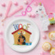 Ein niedlicher Hund mit einer Kugel und einem Gericht aus Futter, ein Hundehaus und farbenfroher Text, der T - Shirt, Hunde, Tasse, Taschen, Karten, Aufkleber, Schlüsselketten, Schaltknöpfe, Magnete, Trockenleerbretter, elektronische Hüllen und Ärmel, Teller und Servietten aus Papier und viele andere Hundedesign-Artikel liest!