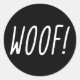 Woof! Weißer Text im schwarzen Hintergrund Runder Aufkleber