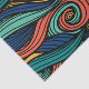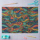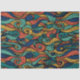 Ein lebhaftes und auffälliges Muster mit einem bunten Paisley-Muster, das den Eindruck vermittelt, aus zahlreichen Wollfäden gewebt zu werden. Die Farbpalette besteht aus vier lebhaften Farben: Gelb, Türkis, Dunkelblau und Orange. Gelb fügt dem Design ein sonniges und fröhliches Element hinzu, das Gefühle von Wärme und Freude hervorruft. Türkisfarben mit coolen und beruhigenden Eigenschaften kontrastiert wunderschön mit dem Gelben, wodurch ein ausgewogener und harmonischer visueller Effekt entsteht. Dunkelblau bringt Tiefe und Reichtum in das Muster, verankert es und verleiht ihm ein Gefühl der Stabilität. Die Orange-Zugabe ist eine kühne Wahl, die Energie und Vitalität in das Design einfließen lässt. Es dient als auffallende Akzent-Farbe, die die Aufmerksamkeit auf bestimmte Elemente im Paisley-Muster zeichne. Insgesamt ist dieses Design eine reizvolle Kombination von Farben und Mustern, die ein lebendiges und spielerisches Ambiente ausstrahlt und gleichzeitig ein Gefühl von Eleganz und Wärme bewahrt. Es ist ideal, um eine Touch von Launen und Kreativität zu verschiedenen Produkten und Umgebungen hinzuzufügen, von Textilien und Mode über Innendekoration und Kunstwerke.