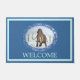 Ein Wollmammut in einem typischen Tundra-Ambiente der Eiszeit. Text lesen, "WELCOME" erscheint auch.