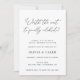 Hochzeitsempfehlung mit "das Warten wert, um endlich zu feiern!" in einem eleganten schwarzen Drehbuch. Passen Sie Ihr Foto auf der Rückseite an oder löschen Sie, wenn kein Foto gewünscht wird.