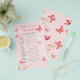 Lieblich mädchenhaftes Baby Dusche Wort Rührei. Die zauberhaften rosafarbenen Schmetterlinge sind mit rosa Blume und botanischen Stoffen gepaart. Die Rückseite der Karte weist ein zartes Muster mit denselben Schmetterlingen und Blume auf. Individuell anpassbarer, weichrosa Hintergrund sowohl vor als auch hinter der Babyduschkarte. Babyduschspiele sind die lustigste und eine sichere Art, die Menge zu erwärmen, sich zu treffen und sich miteinander zu vermischen. Lasst uns Party und Spaß haben! Teil der Sammlung von Stationierwaren und Party aus rosa Schmetterlingen