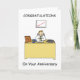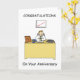 Cartoon man sits von his office desk. In Schmutzige Charts geht's um die Wall Rad. The words 'Congratulations on your anniversary' accompany the image.