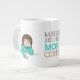 Jumbo Tasse (20 oz) zeigt die Darstellung einer gestressten Dame und einer müden Dame mit den Worten "Vielleicht I Just Need More Coffee ~ immer die Lösung in meinem Buch!