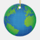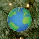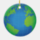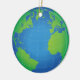 Ein Blick auf die Erde über dem Atlantik als blaue und grüne Karte mit den wichtigsten Kontinenten Amerikas, Europas und Afrikas.