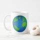 Eine grafische Darstellung der Erde über dem Atlantischen Ozean als blaue und grüne Karte mit den wichtigsten Kontinenten Amerikas, Europas und Afrikas. Sie können die Hintergrundfarbe ändern oder Ihren eigenen Text hinzufügen.