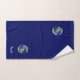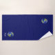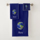 Weltkugel und Text auf marineblau Badetuch Set. Text kann personalisiert sein. Text nur auf einer Seite!