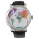 Uhr, Klassische Damenuhr mit schwarzen Lederarmband