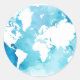 World Map In Watercolor Blues Runder Aufkleber