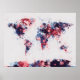 Weltkarte aus einer Mischung aus kobaltblauen und karminroten Farbspritzen.