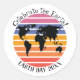 World Map Retro Sunset Silhouette Runder Aufkleber