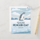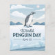 This charming digital illustration celebrates World Penguin Day with a stylized penguin standing in a serene polar landscape. Cool blue tones, snowy textures, and a glowing moon create a calm winter atmosphere, while elegant typography highlights April 25. A nature-inspired artwork that captures the beauty of penguins, polar environments, and wildlife awareness in a playful yet refined style.