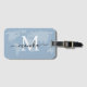 Stilvolle, moderne Gepäckmarke mit Dusty Blue Karte des weltweiten Hintergrundes mit schwarz-weißem individuellem Monogramm. Mit dem Vor- oder Nachnamen und dem Anfangsbuchstaben können Sie leicht personalisiert werden. Diese Dusty Blue Wortkarte ist ein personalisiertes Geschenk.