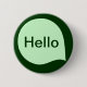 Eine Knopf-Abzeichenschablone mit einem stilvollen Wortblasenentwurf mit dem Wort "hallo". Jedoch kann dieser Entwurf mit Ihrem eigenen Text, kurzen Wörtern des Singles oder sogar längeren Texten mit 3 bis 4 Linien auch besonders angefertigt werden, indem man den Text kleiner macht. Sie können sogar größere Kontrolle über dem Text auch erzielen, indem Sie einen unterschiedlichen Textgegenstand für jede Linie schaffen, welche die Möglichkeiten endlos sind. Die Hintergrundfarbe kann auch geändert werden.