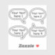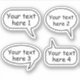 Stickers mit benutzerdefinierten Text-Sprache Blasen, Set von vier. Sie können die Hintergrundfarbe, die Randfarbe, die Grenzdicke, den Schriftart und den Schriftart mit dem Designwerkzeug ändern, aber auch den Text verändern und verändern.